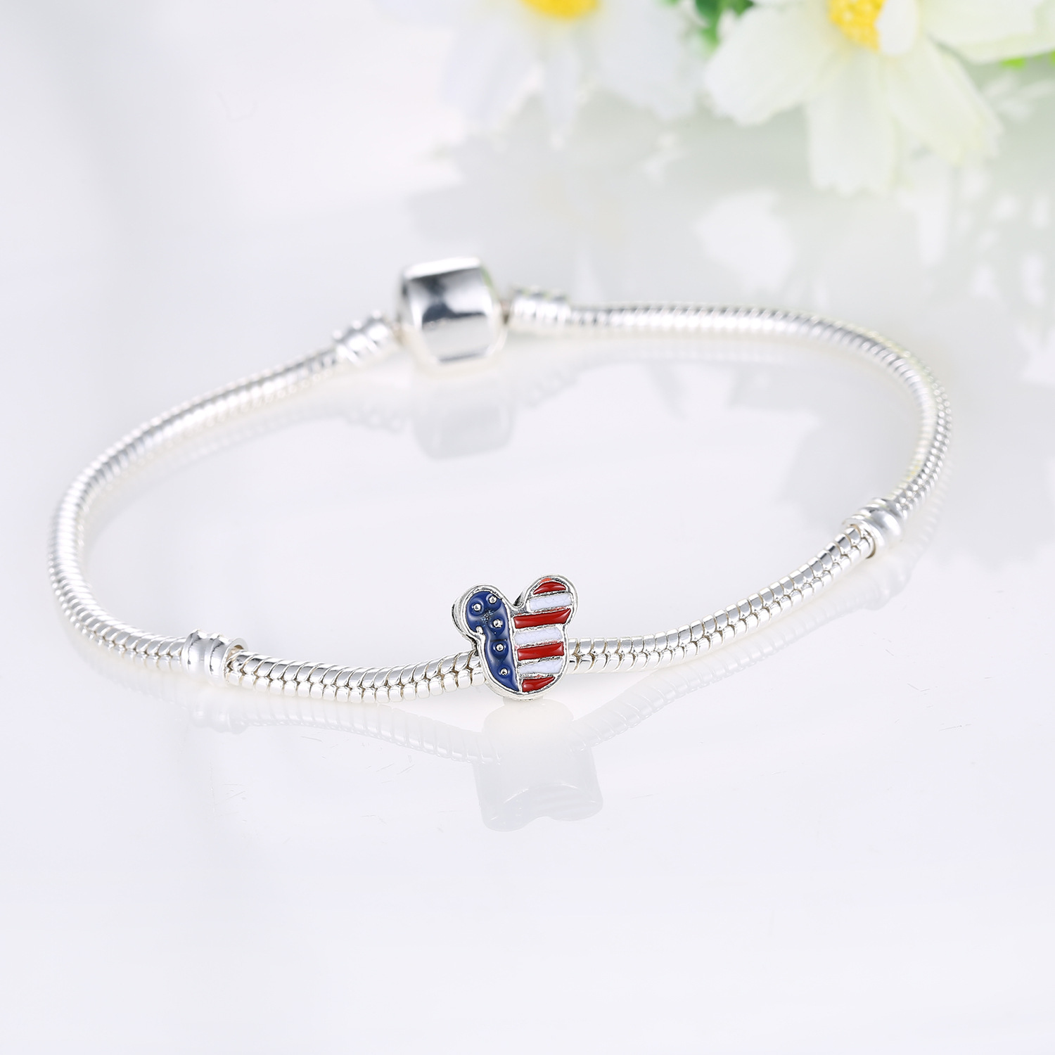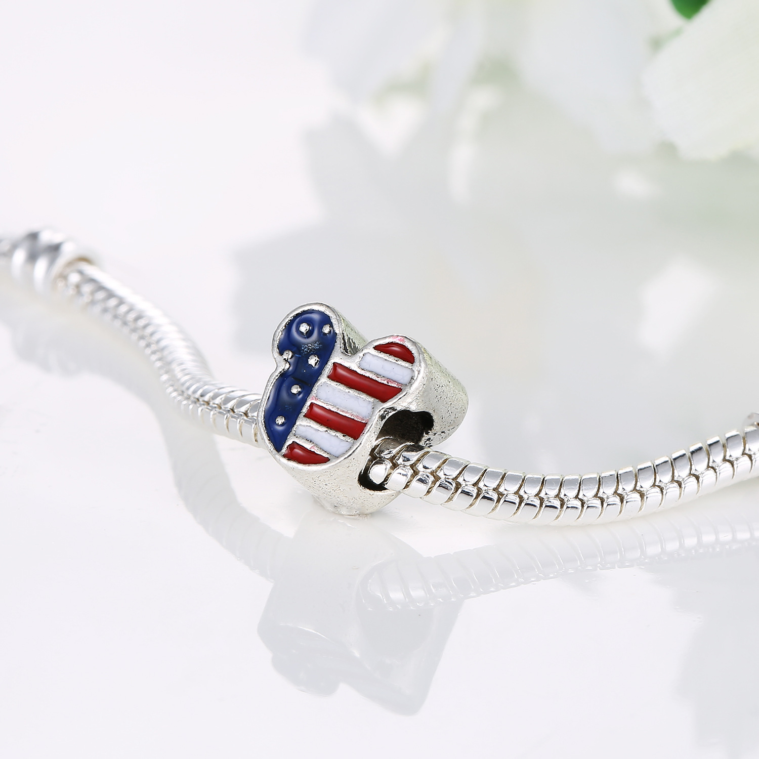 Celebrate your unique style with our newly designed American flag cartoon charm beads. Crafted from high-quality silver, these charming large-hole beads are perfect for the DIY enthusiast looking to add a touch of personality to their jewelry creations. Featuring an adorable Mickey Mouse shape and a vibrant dripping oil treatment, these beads are the ideal blend of fun and elegance.